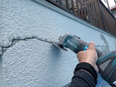 電動工具でクラックの幅を広げて