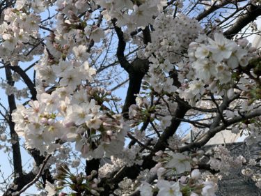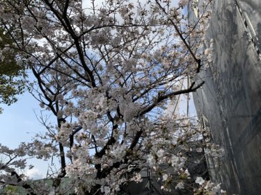 工事中にお庭の桜も満開となり