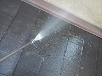 まずは高圧洗浄で苔や汚れを