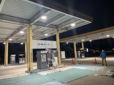 ガソリンスタンド塗装工事着工しました!!