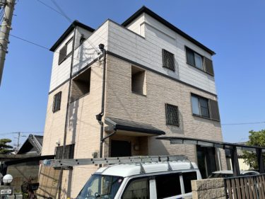 3階建て窯業系サイディング住宅の塗装工事に着手しました!!気候の良い時に工事したいとの事で6月ごろから