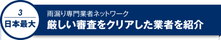 雨漏り119は昨今急増している雨漏りという 社会問題に真摯に向き合い瑕疵の発見と修理, そしてゲリラ豪雨に耐えうる住宅の雨漏り対策の技術向上に努める専門業者で 組織するプロフェッショナル集団です。 お客様にご提供する工事品質とサービス品質を維持するために 厳しい条件・審査をクリアした業者のみ参加を認められております。 いい加減な業者や低レベルな業者は一切おりませんのでご安心ください。