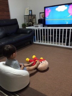 アンパンマンを見ながら